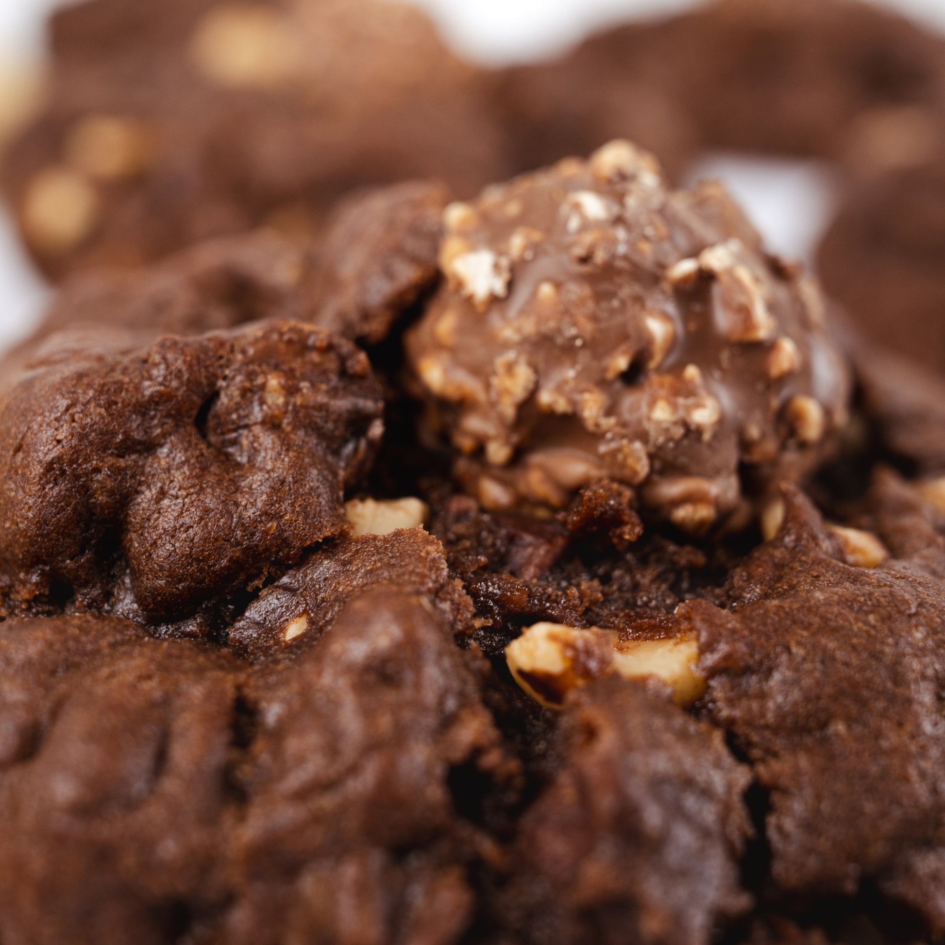 This NY-style cookie is packed with roasted hazelnuts, rich milk chocolate chunks and a gooey Nutella center that melts with every bite—topped with a whole Ferrero Rocher for that extra wow.