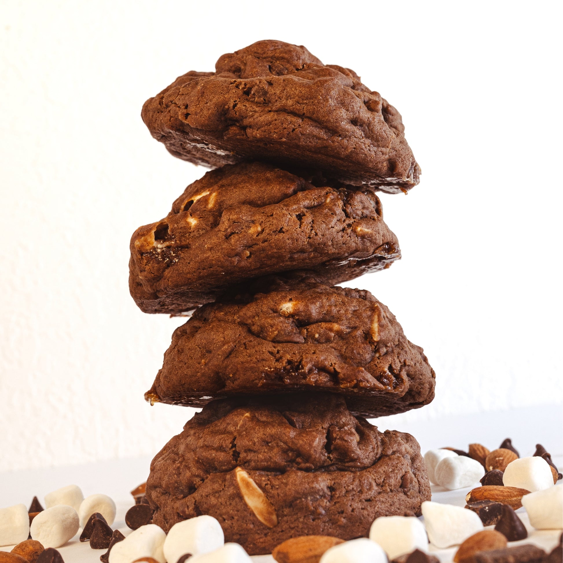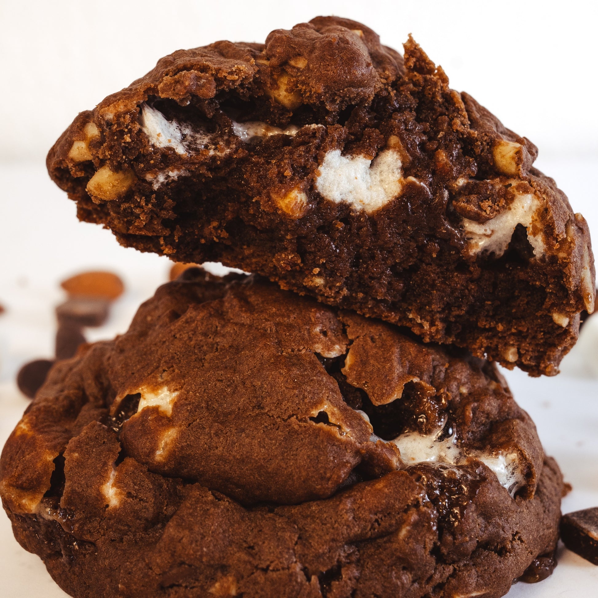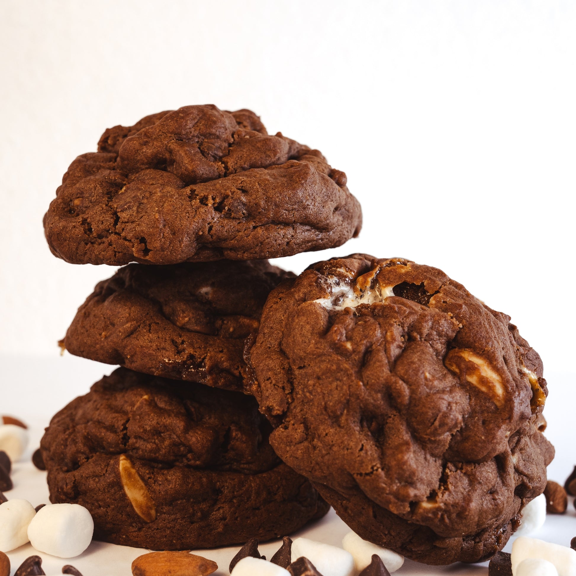 Crispy on the outside, rich and gooey on the inside — this cookie is a flavor bomb. Melted milk chocolate, fluffy marshmallows, and toasted almonds come together in a deep cocoa dough. An irresistible treat for chocolate and ice cream lovers.